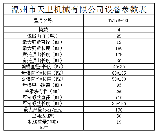 您當(dāng)前的位置:首頁(yè) / 產(chǎn)品中心 / 四模四沖冷鐓機(jī) / └ TW17B(M10)冷鐓機(jī) / TW17B-4SL全自動(dòng)多工位冷鐓機(jī)
